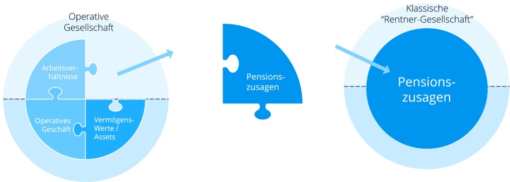 Es gibt einerseits natürliche Personen, die – zumeist am Ende ihres unternehmerischen Wirkens – noch die Anteile an ihrem Restbetrieb, bestehend aus Pensions­verpflichtungen, halten. Andererseits gibt es juristische Personen (Konzerngesellschaften), die – zumeist infolge von Liquidationen oder nach M&A-Transaktionen – noch die Geschäftsanteile am Restbetrieb, bestehend aus Pensions­verpflichtungen, halten.