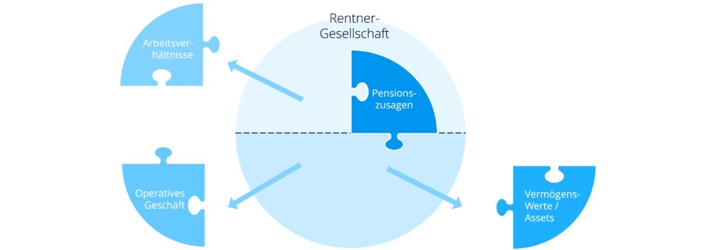 Rentnergesellschaften entstehen meist im Kontext von Unternehmensverkäufen nach sog. asset deals. Die für die Weiterführung notwendigen assets und das Personal werden dabei auf das Erwerbsunternehmen übertragen; zurück bleiben die Pensionsverpflichtungen und Kapital.