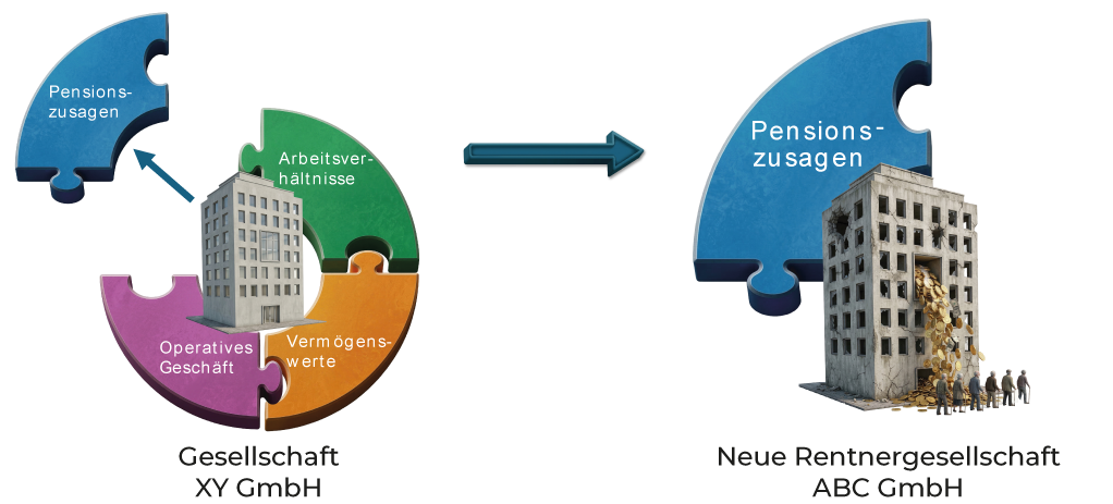 Nach Liquidation oder Veräußerung des inhabergeführten Betriebs bleibt oft nur eine Rentnergesellschaft übrig. Selten wurde dieser Zustand absichtlich hergestellt, sondern ist die Folge der unkalkulierbaren Lasten, die mit Pensionsverpflichtungen einhergehen.Denn diese bleiben allein deshalb in der Rentnergesellschaft zurück, weil der Erwerber des operativen Betriebs nicht bereit war, die Verpflichtungen zu übernehmen. Die Administration der z.T. noch Jahrzehnte fortexistierenden Gesellschaft erfordert das Einbinden der eigenen Nachkommen (Partner, Kinder), die oft nichts mit der Materie zu tun hatten und überfordert sind.Darüber hinaus tendiert die Entwicklung in der Rentnergesellschaft strukturell zur Überschuldung. Im Zeitablauf ergeben sich mithin Haftungsfragen, die nur durch (wiederholte) Nachschüsse (aus dem Privatvermögen) auszugleichen sind.