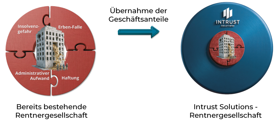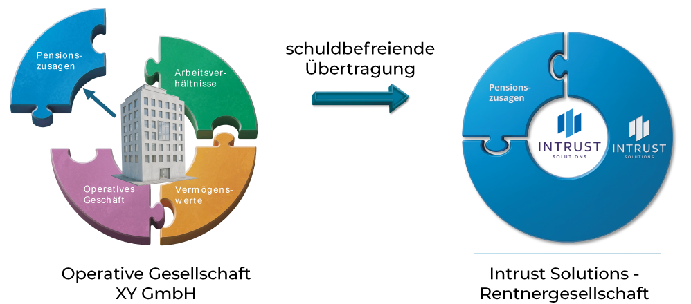 Intrust Solutions beseitigt die strukturellen Probleme von Pensionsverpflichtungen, indem Rentnergesellschaften erworben, Pensionsverpflichtungen auf BAFIN-regulierte Pensionsfonds ausgelagert und die Verwaltung der Gesellschaften langfristig übernommen werden. So entstehen sofortige Enthaftung sowie Entlastung, Rechtssicherheit und wirtschaftliche Handlungsfreiheit.
