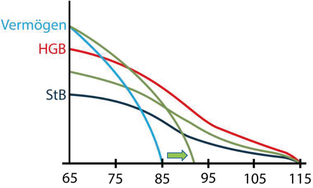 Das Vermögen reduziert sich kontinuierlich (Rentenzahlungen, Administration, PSV etc.).Die bilanzielle Überschuldung ist aufgrund versicherungsmathematischer Effekte nur eine Frage der Zeit.
