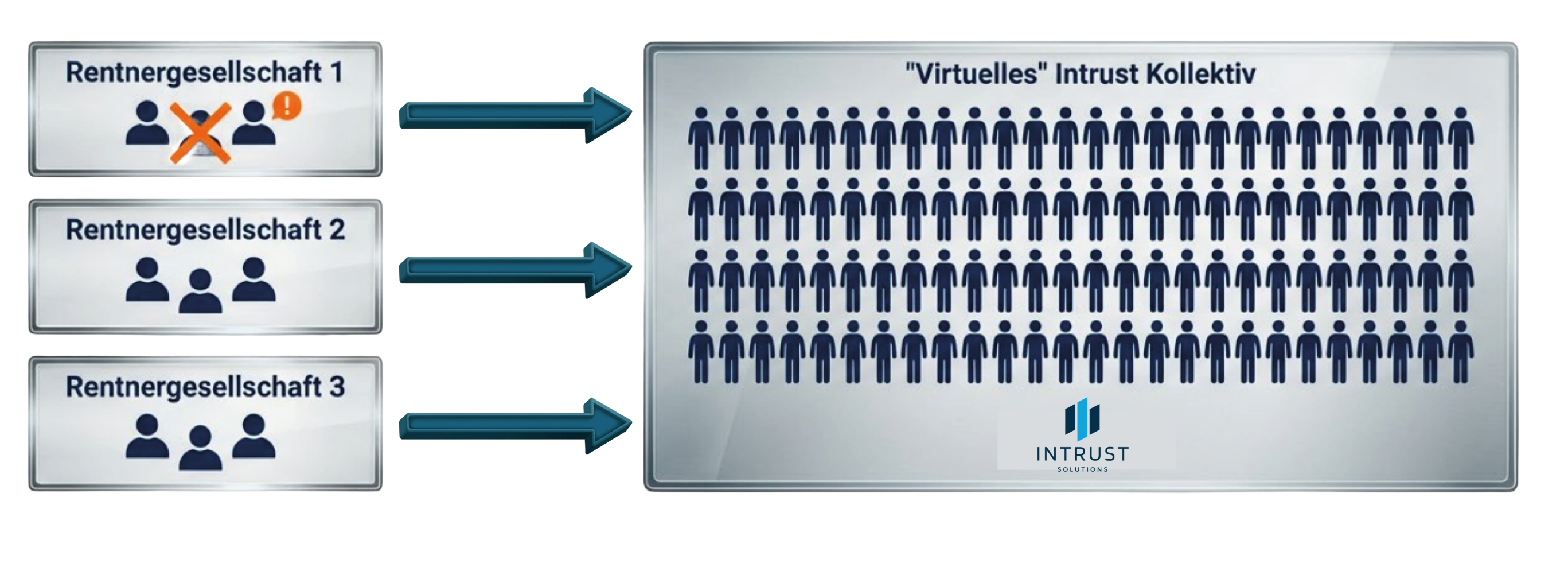 Durch Bündelung vieler kleiner Pensionsbestände in einem virtuellen Kollektiv, werden aus Einzelrisiken berechenbare statistische Größen.