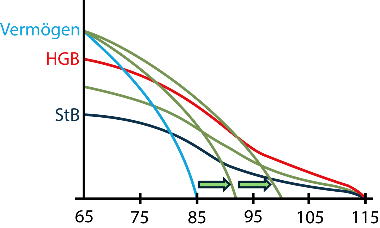 Durch die Kostenersparnisse verlängert sich die Rentenzahlung und ein Nachschuss tritt erst später ein.